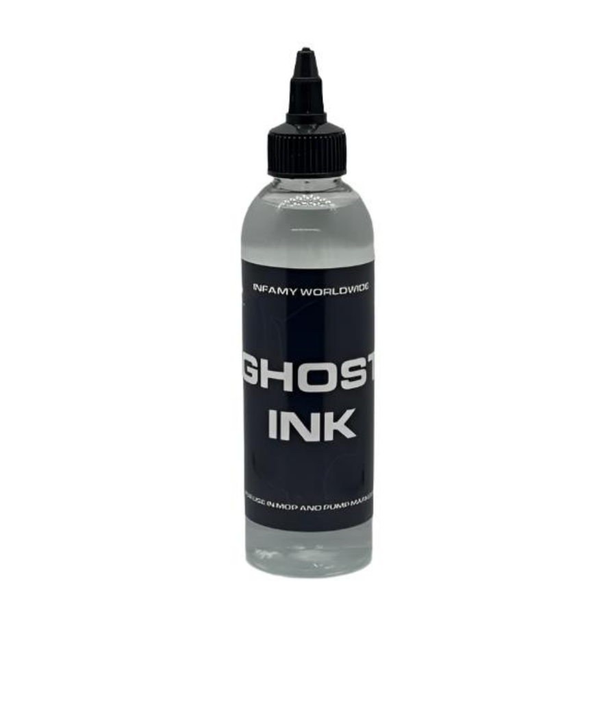 The Infamy Ghost ink is an invisible ink that colors deepbrown after UV-rays have done their magic on it. Perfect for insides and other sneaky spots! 230 ml bottle