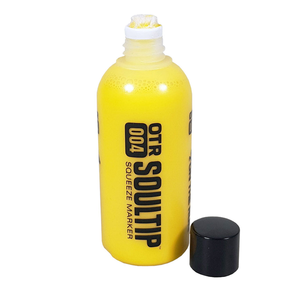 The OTR 004 Soultip squeeze marker by On The Run is a new favorite for many writers. This versatile 75 ml squeezer is relatively small and easily concealable. It comes with a durable 12mm mohair "Diamond-Fibre" nib which won't tear when writing on rougher surfaces (like nylon tip squeezers). The Marker has a refillable 75 ml body, suitable for all ink and paint refills. For the perfect combination use ON THE RUN Soultip paint and Flowpen ink refills.